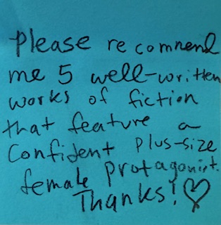 Please recommend me 5 well-written works of fiction that feature a confident plus-size female protagonist. Thanks! [heart]
