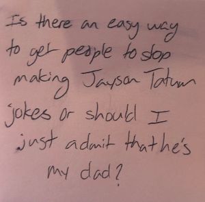 Is there an easy way to get people to stop making Jayson Tatum jokes or should I just admit that he’s my dad?