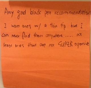 Any good black pen recommendations? I want ones w/ a thin tip but I can never find them anywhere….at least ones that are not SUPER expensive