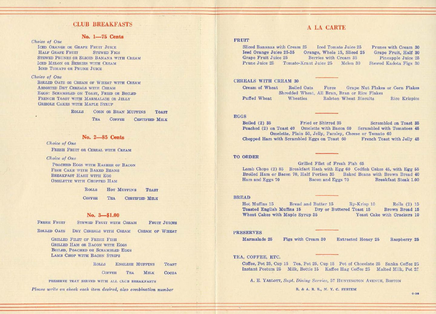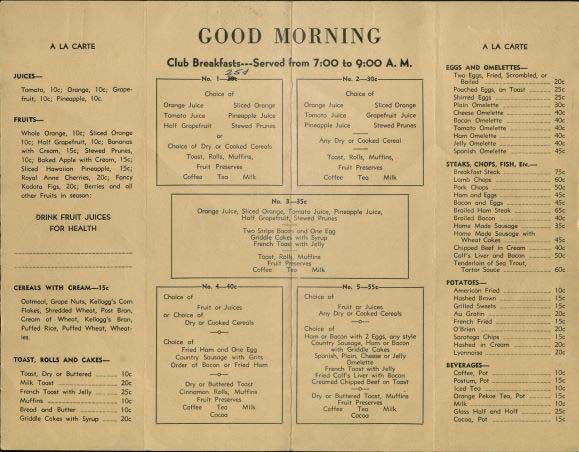 Breakfast Menu, Hotel Reed, New Orleans, 1941