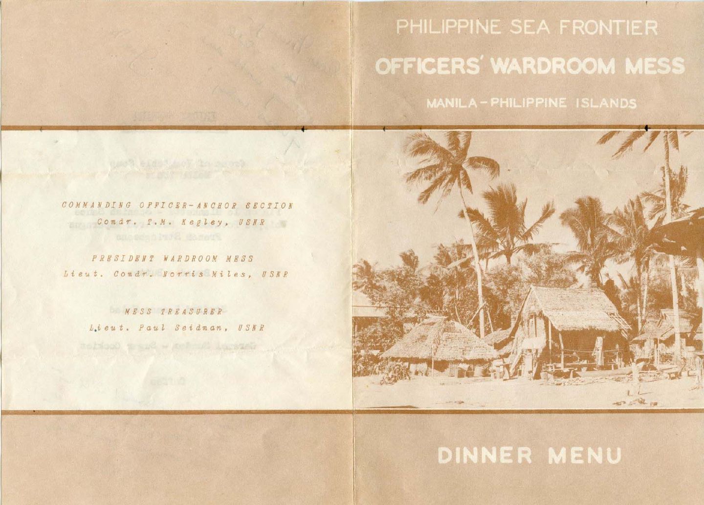 Philippine Sea Frontier Officers’ Wardroom Mess dinner menu, September 21, 1945