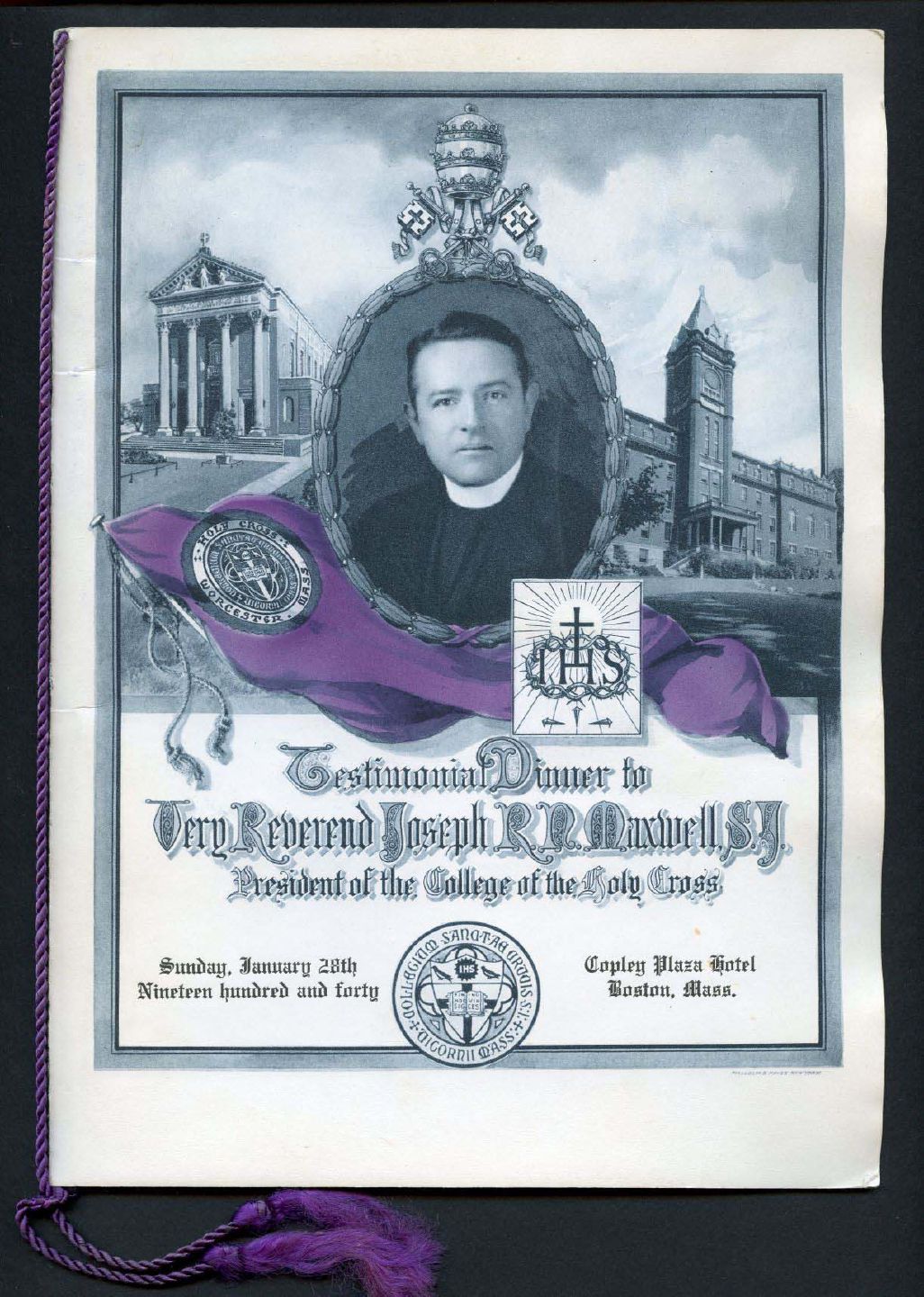 Joseph R.N. Maxwell, SJ (1899–1971) was dean of studies at Boston College from 1935 until his appointment as President of the College of the Holy Cross in 1939, at which time the newly-named head of Boston College’s Worcester rival was honored in Boston at the Copley Plaza Hotel. In 1955 Fr. Maxwell was again honored—this time by the Boston College Alumni Association—as he was elevated to the presidency of the Association of American Colleges. He served as the organization’s 41st President—the first Catholic priest to do so. Fr. Maxwell was Boston College’s President from 1951–1958.