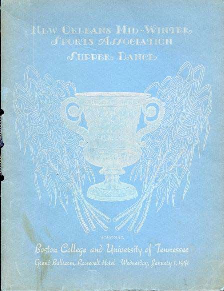 New Orleans Mid-Winter Sports Association Supper Dance Honoring Boston College and University of Tennessee menu, January 1, 1941.