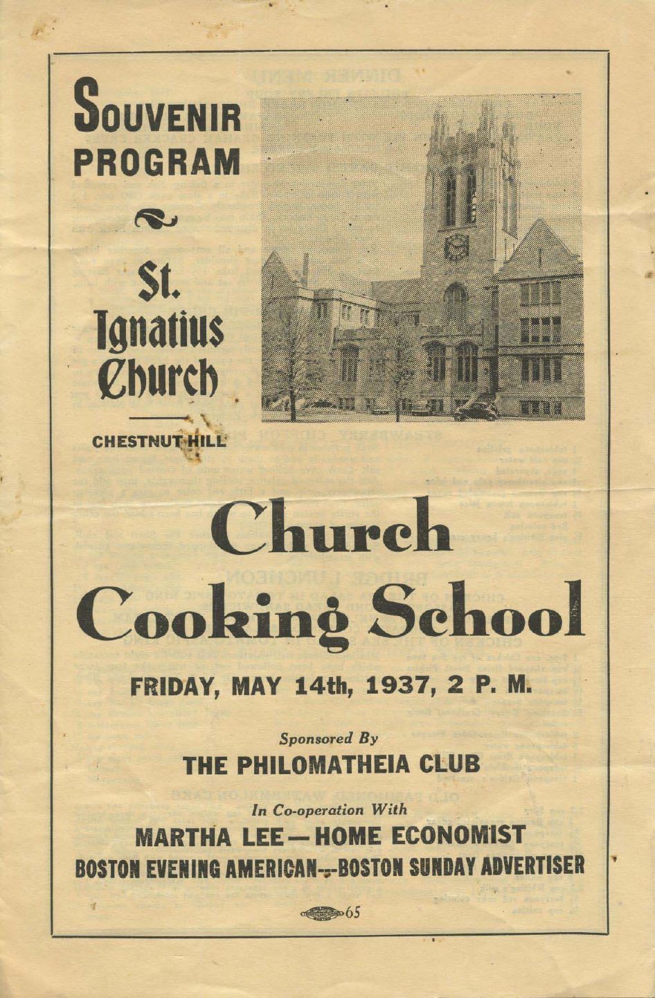 St. Ignatius Church Cooking School program, May 14, 1937