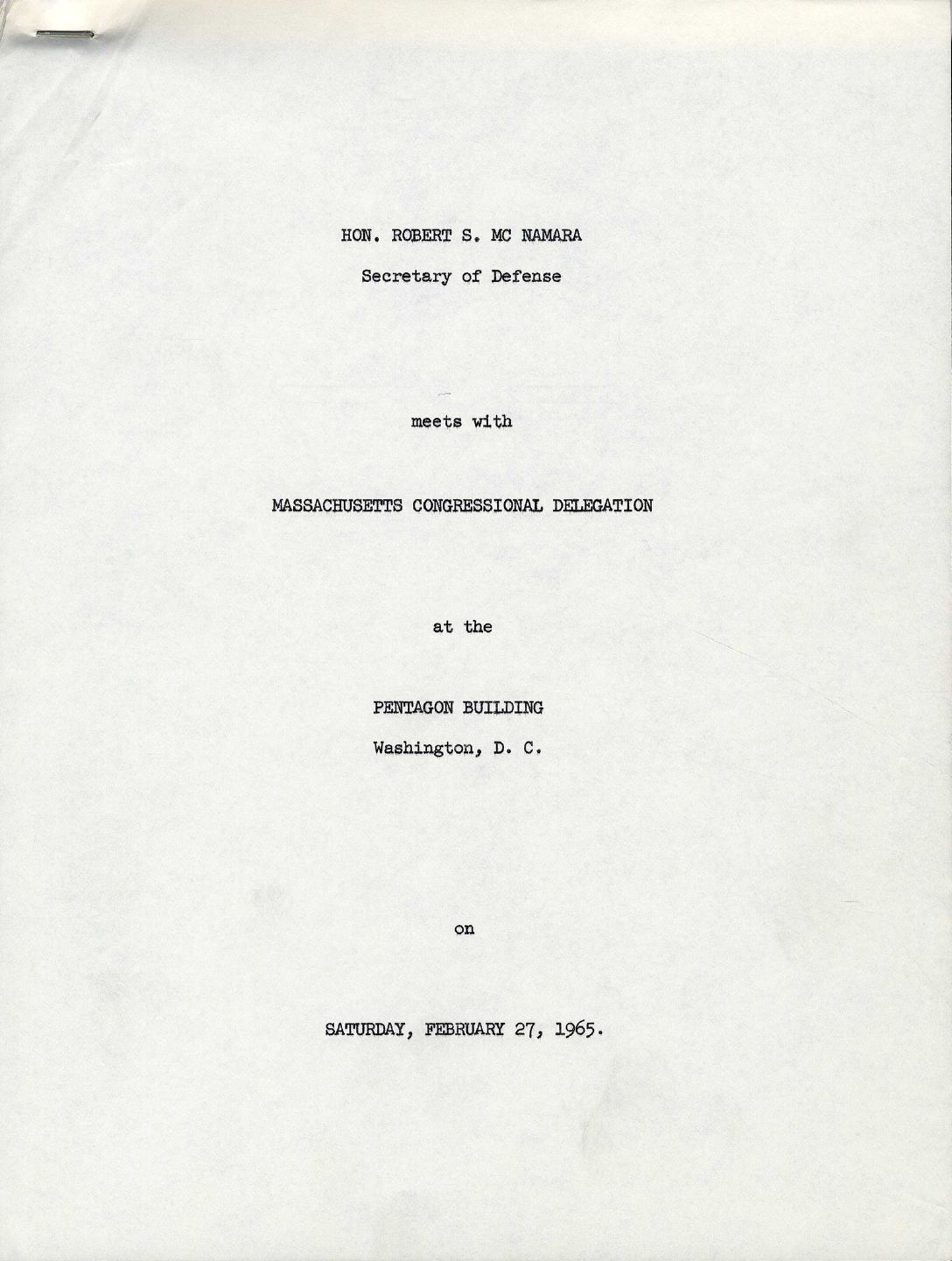 Transcript of Massachusetts Congressional Delegation meeting with Secretary of Defense Robert S. McNamara, 1965.