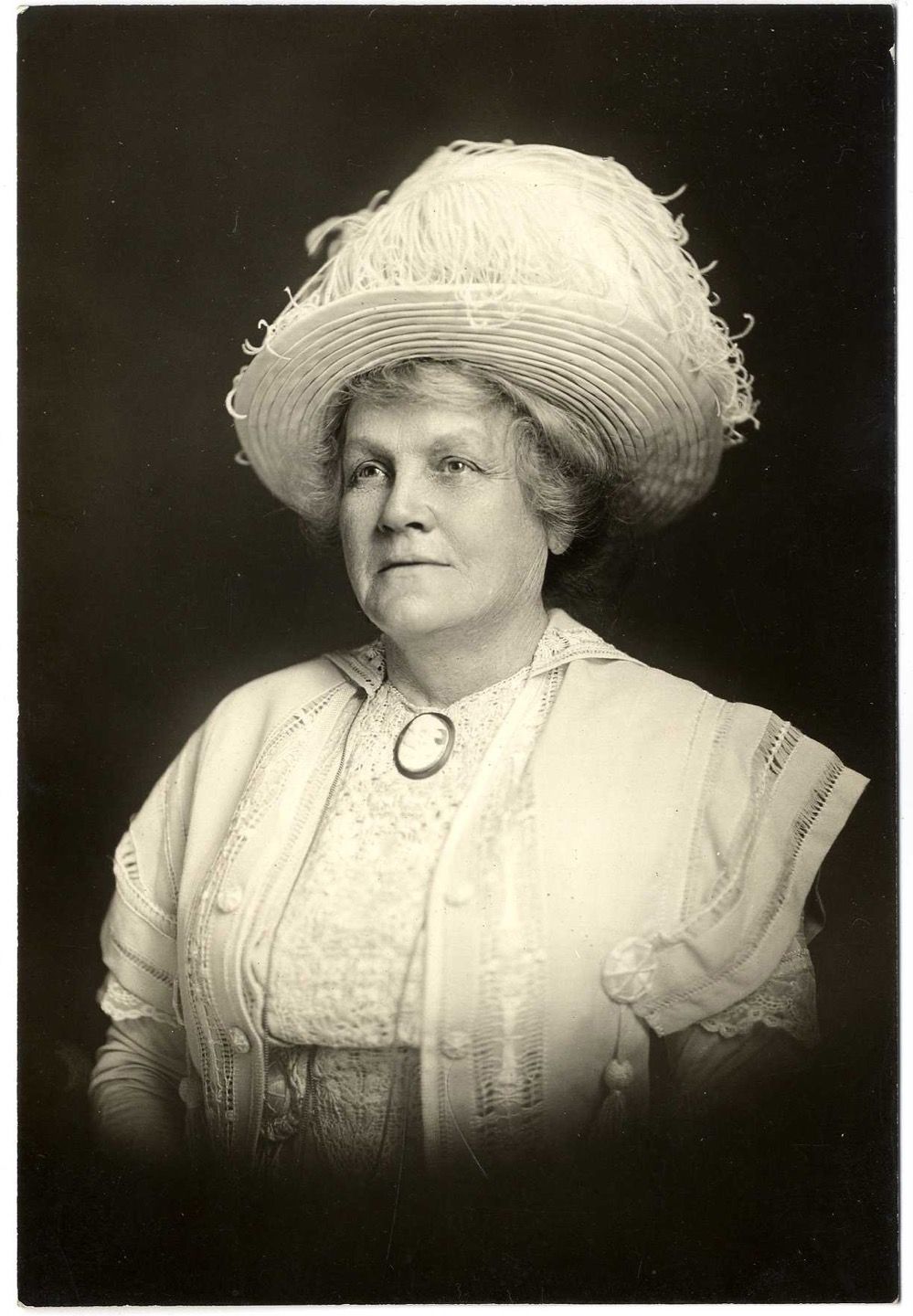 Portrait of Martha Moore Avery, wearing crochet jacket and hat.