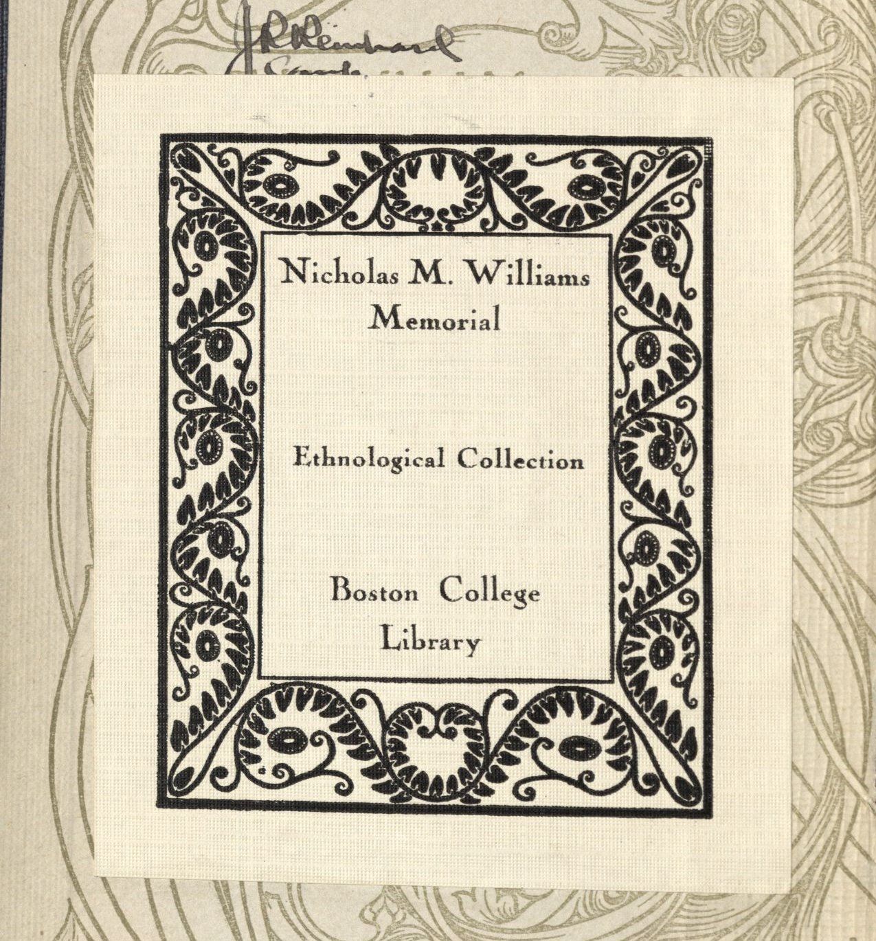 Joseph J. Williams was born in Boston, Massachusetts on December 1, 1875. In 1893 he entered the Society of Jesus at Frederick, Maryland. From 1912 to 1917 Williams served as a missionary in Jamaica. These five years laid the foundation for his studies in anthropology. Williams gathered archaeological and anthropological data during his stay on the island. Williams began lecturing in Boston College’s graduate school in 1932 and became widely known for his anthropological lectures. He helped establish the department of anthropology at BC. He also established an ethnological library containing Africana and Caribbeana; the library is named in honor of his father, Nicholas M. Williams and contains over 7,000 volumes. Williams died at Shadowbrook on October 28, 1940 after suffering a severe heart attack.