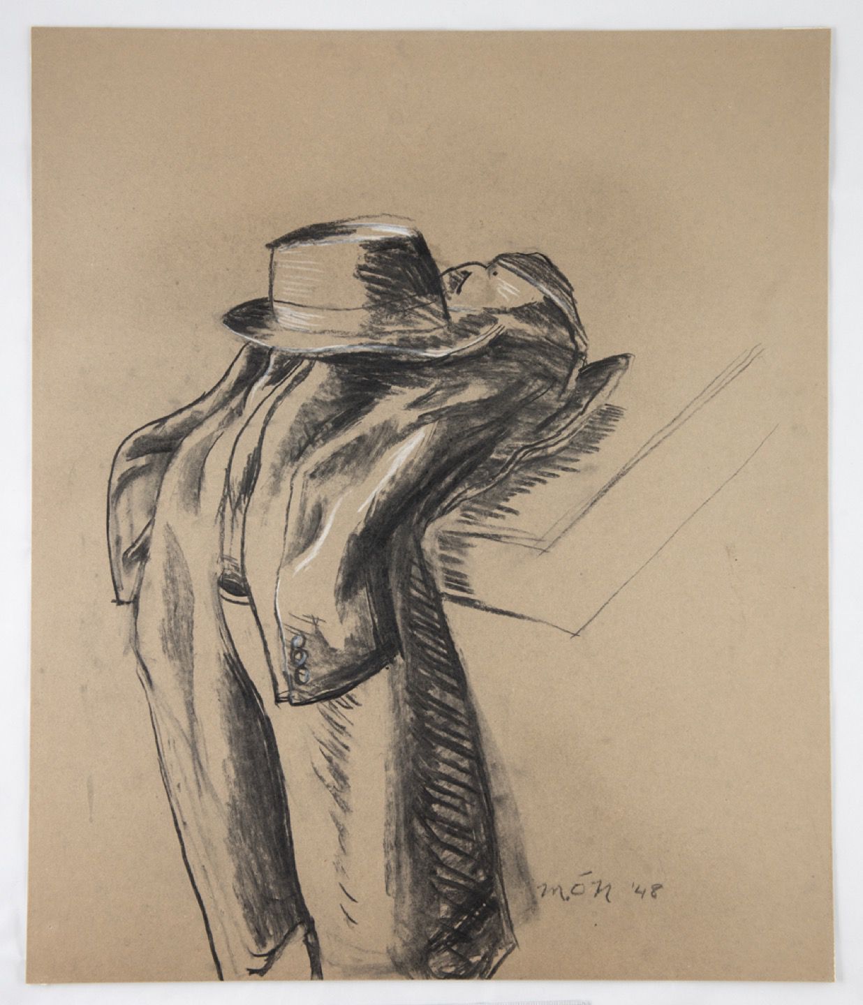 Micheál kept the overcoat and several other of his brother’s personal effects. Burns Library acquired them from Micheál in 1997 along with a collection of his brother’s papers and books and a number of his own paintings, drawings, and sketches.