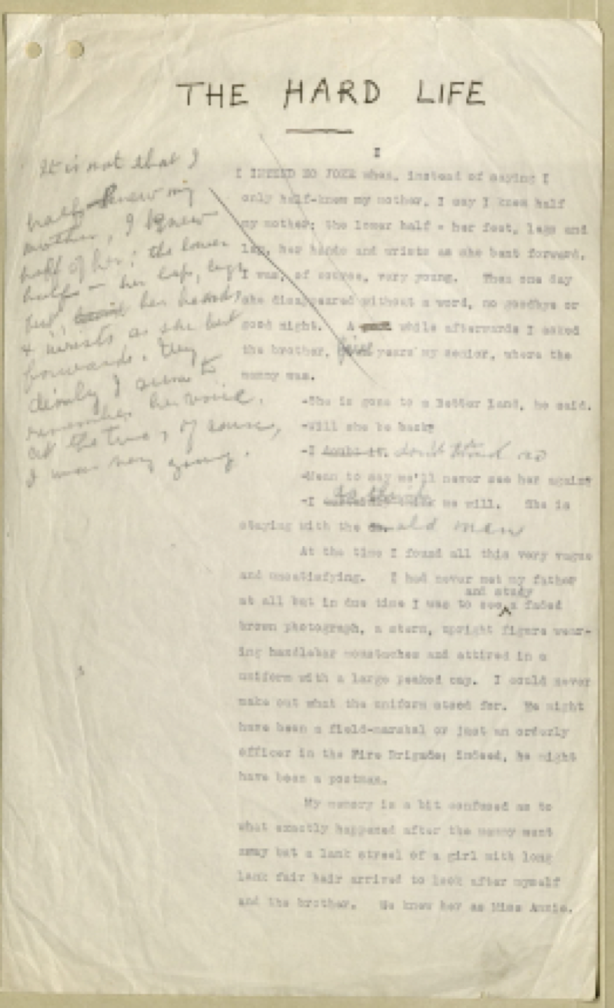 Declining health and rising tax and medical bills prompted O’Nolan to seek more sources of income. His friend and fellow author, filmmaker, and toy collector Leslie Daiken suggested peddling his manuscripts to an American library. The Harry Ransom Center at The University of Texas at Austin was starting to purchase literary archives and eventually bought the manuscripts of At Swim-Two-Birds and The Dalkey Archive in 1965. Southern Illinois University acquired a larger group of manuscripts and correspondence from O’Nolan’s widow, Evelyn, shortly after his death the following year.