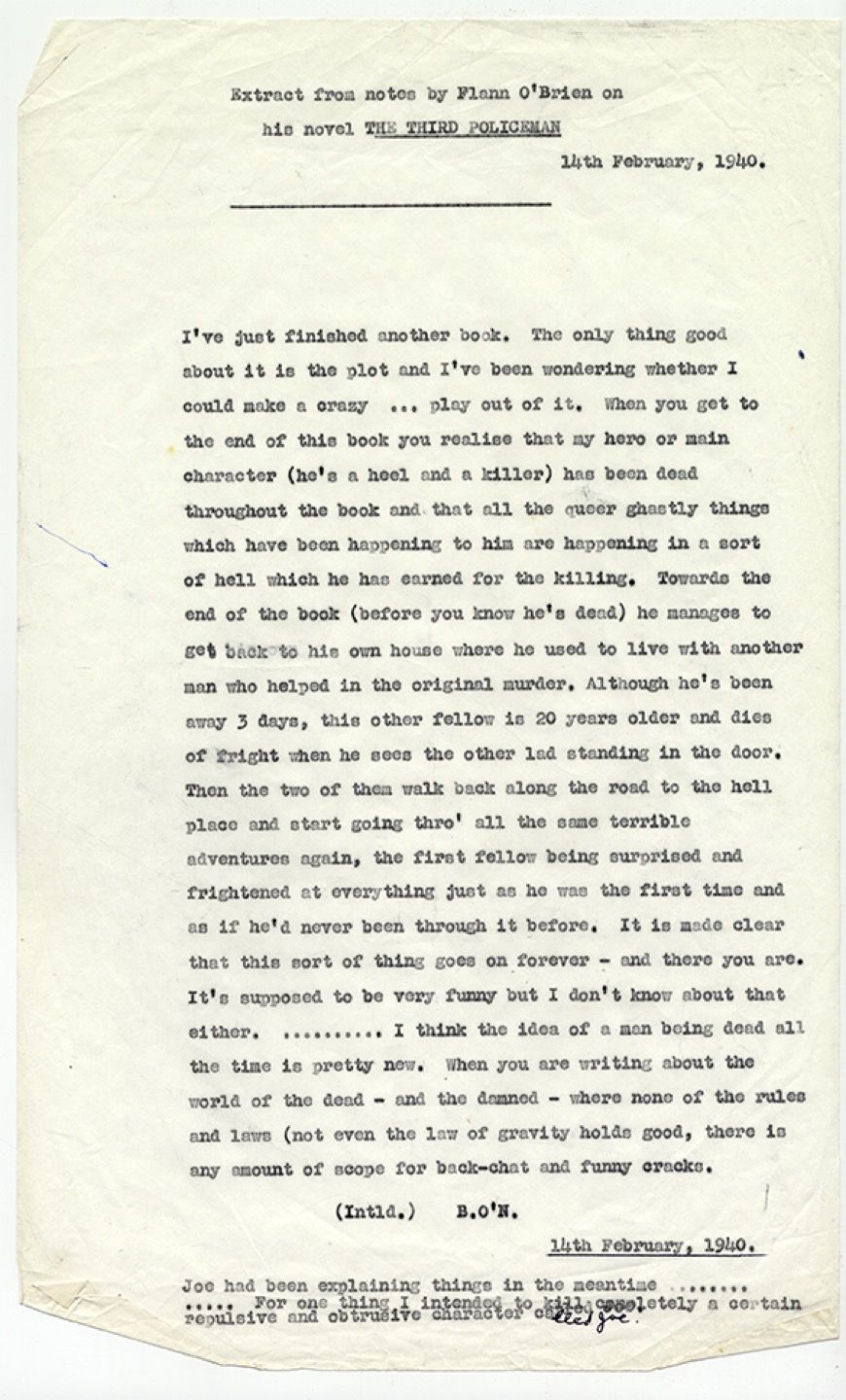 The Third Policeman, annotated typescript, 1940 January