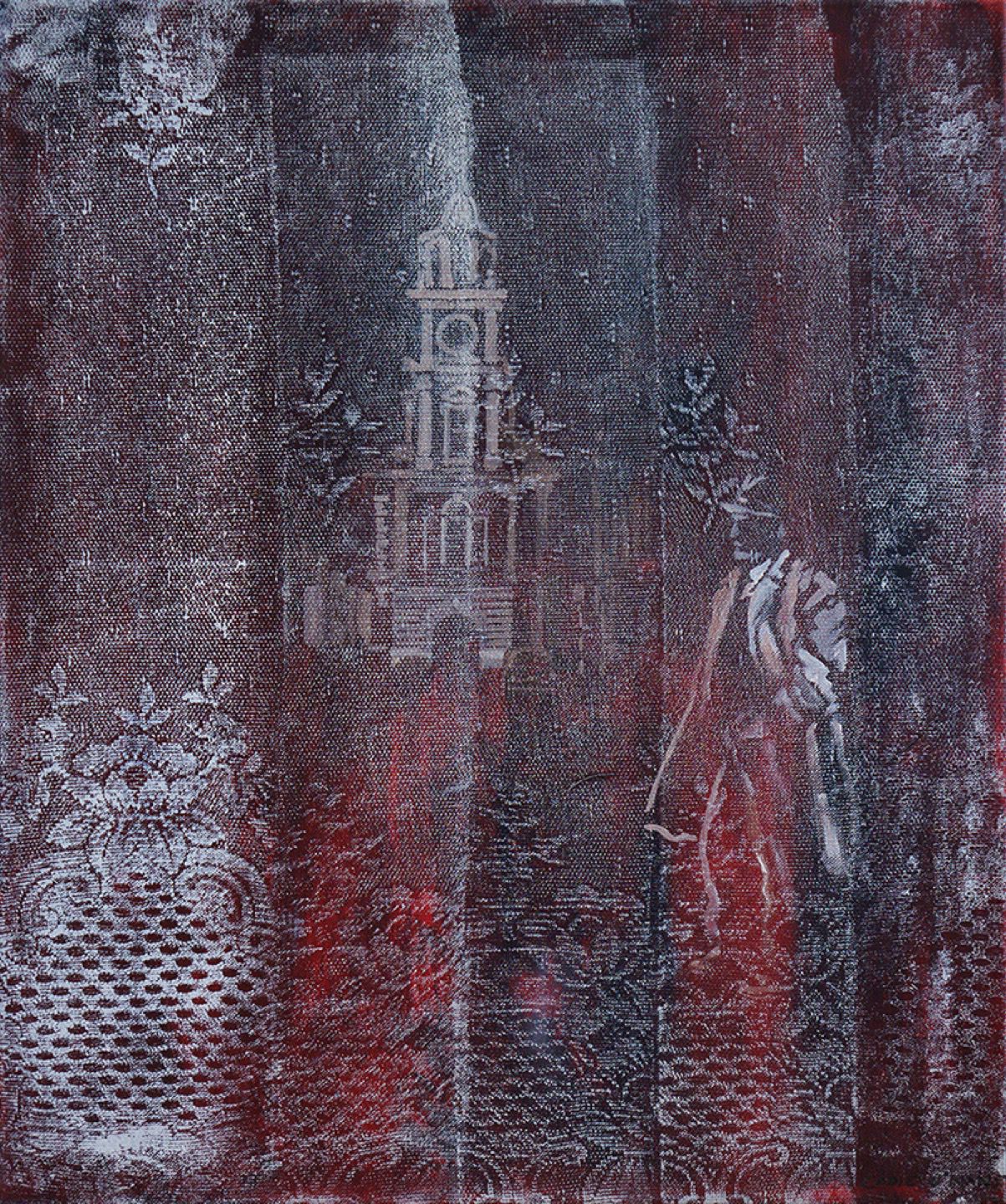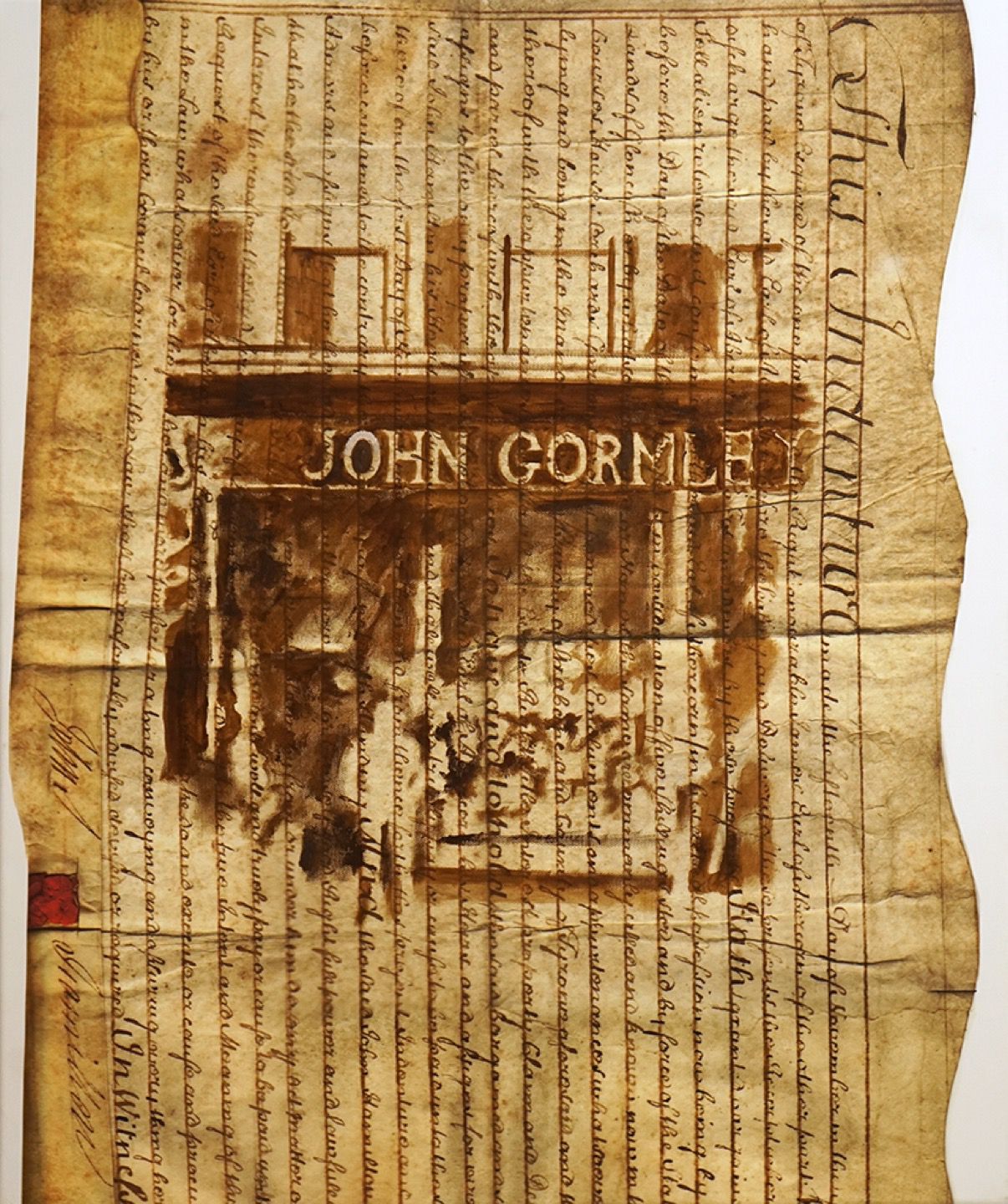 The content and materiality of documents relating to O’Nolan’s former homes in Strabane have inspired me to create an evolving series of paintings. The documents act as a ground upon which disparate fragments can play out an open-ended narrative stimulated by O’Nolan’s novels and authorial personae.