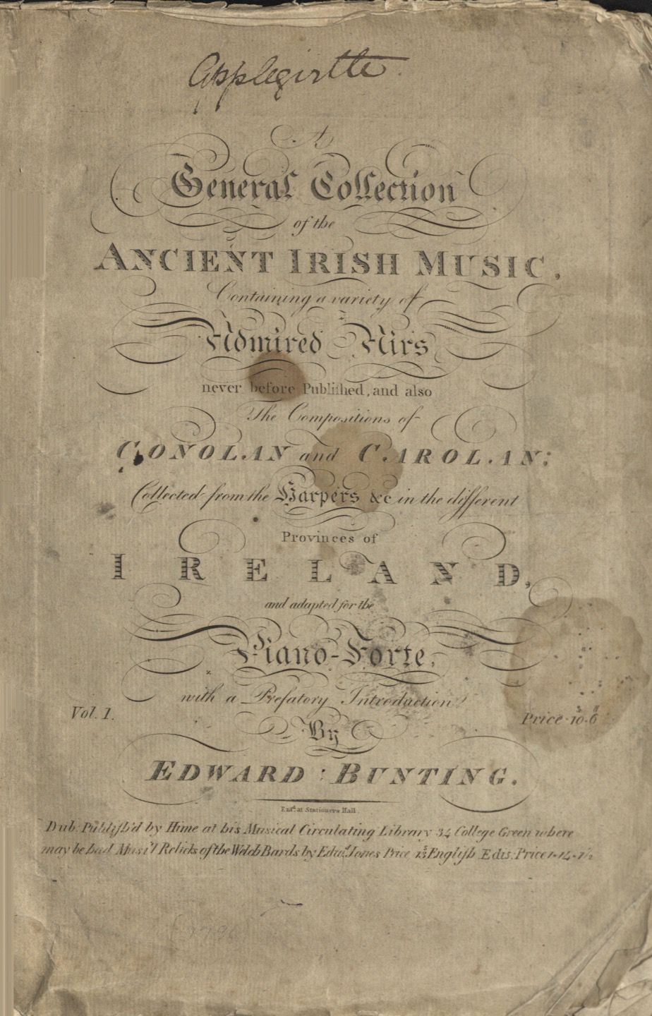 Title page of an early printing of Bunting’s General Collection of Ancient Irish Music
