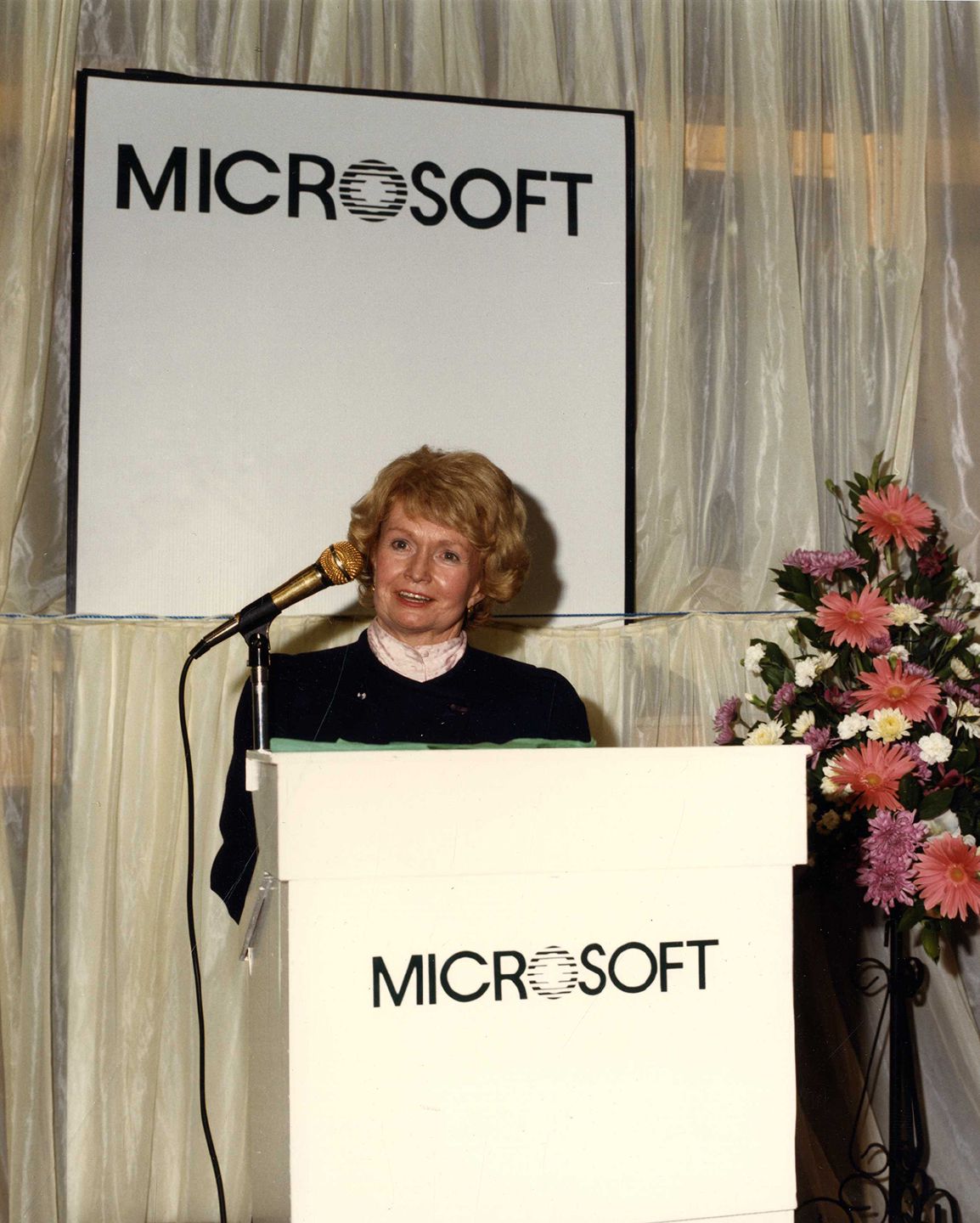 Margaret Heckler at an event promoting U.S. technology, circa 1986-1989.