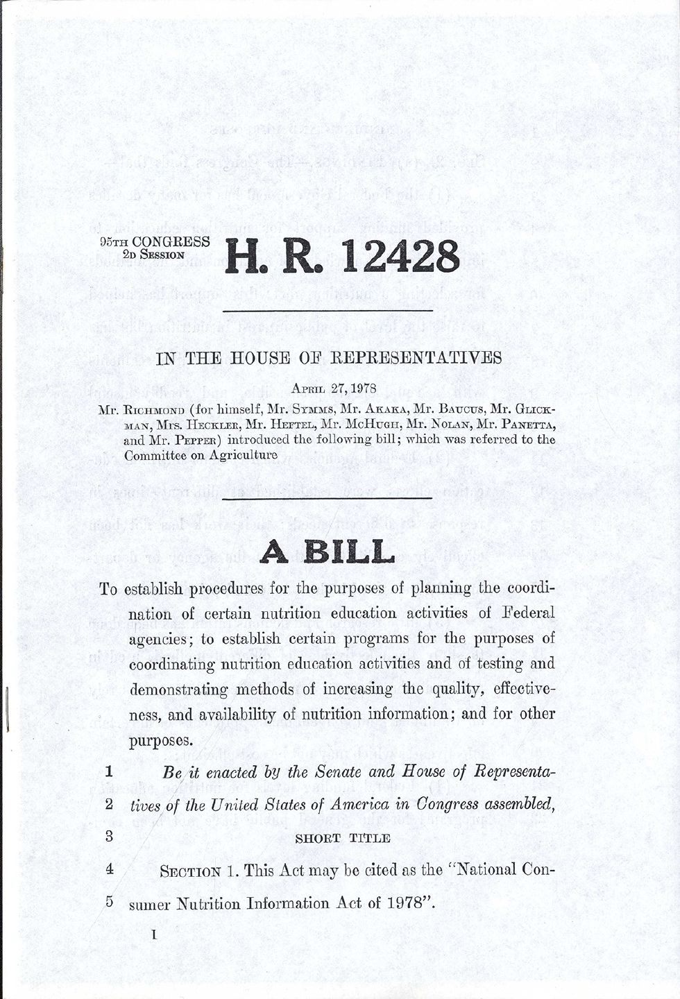 H.R. 12428 ‘National Consumer Nutrition Information Act of 1978,’ co-sponsored by Margaret Heckler, April 27, 1978.