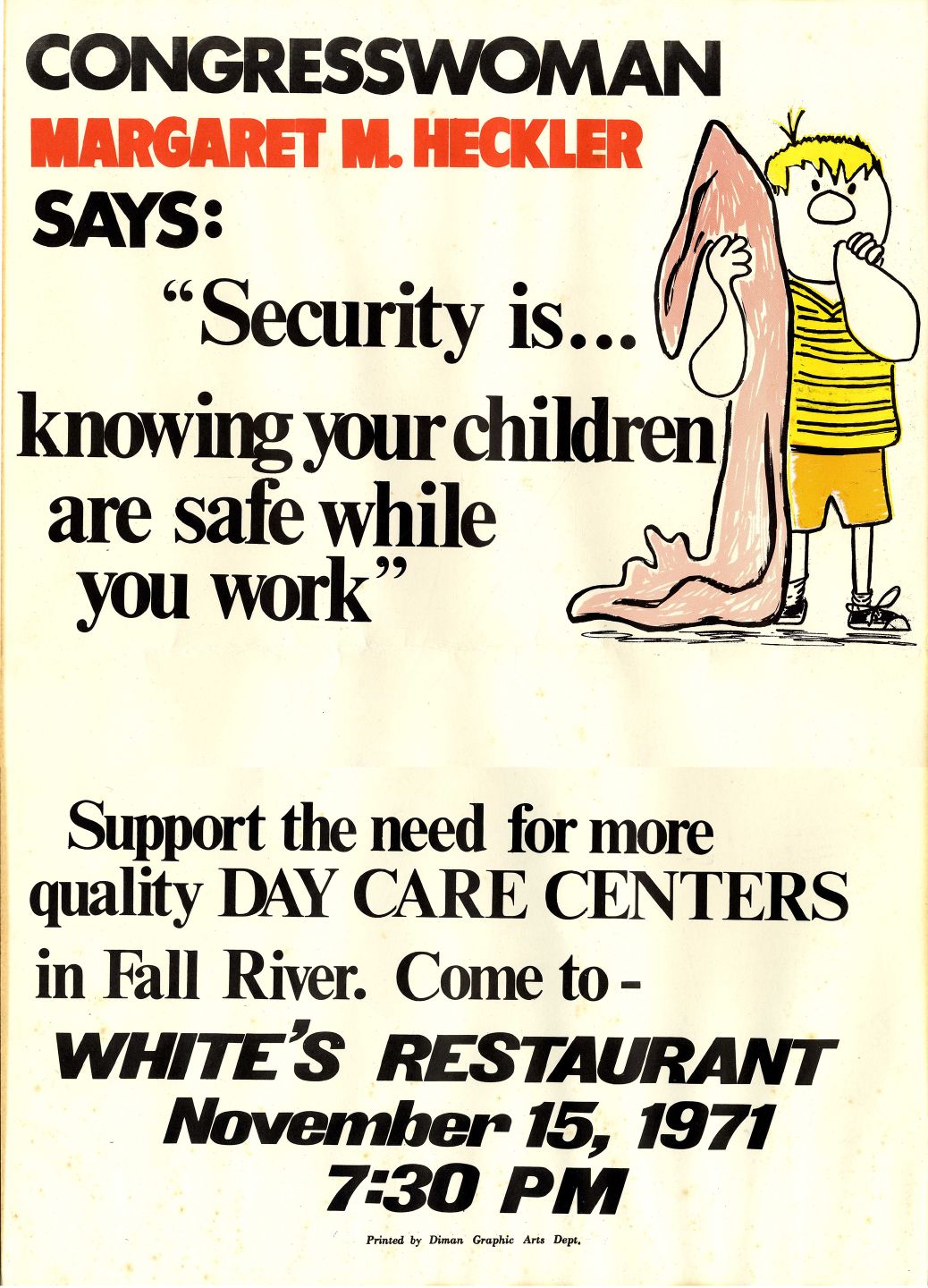 Poster advertising daycare hearings in Fall River on November 15, 1971.