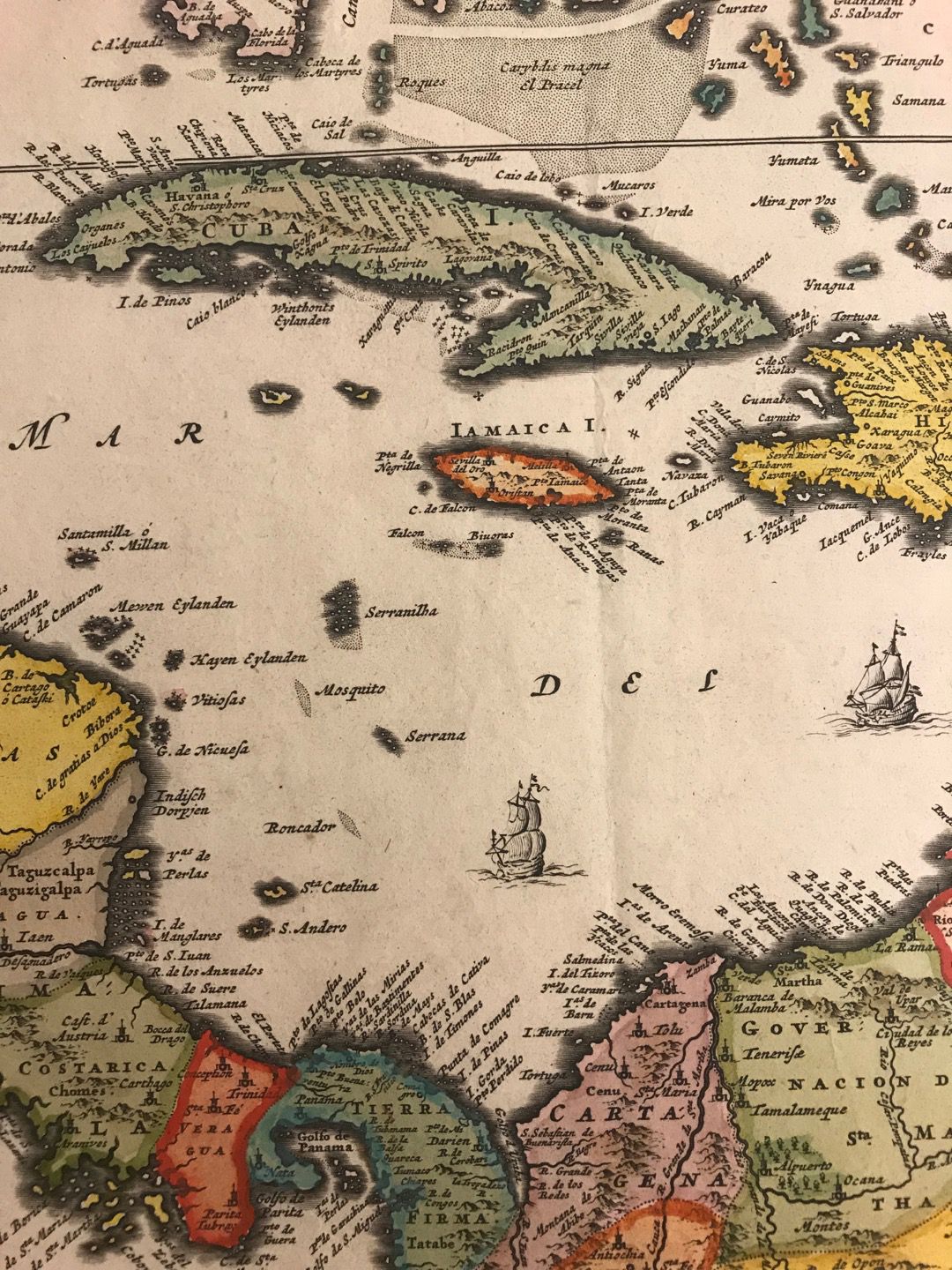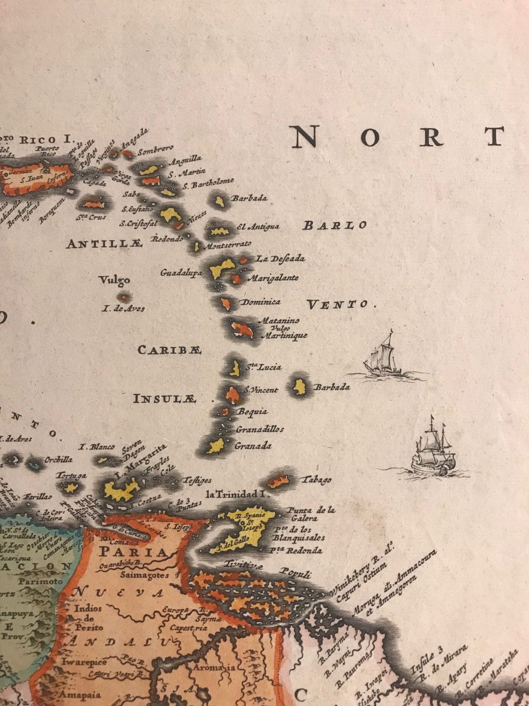 Visscher, Nicolaes. Insulae Americanae in Oceano Septentrionali ac regiones adiacentes: a C. de May usque ad Lineam Aequinoctialem per Nicolaum Visscher. 1672, map detail.