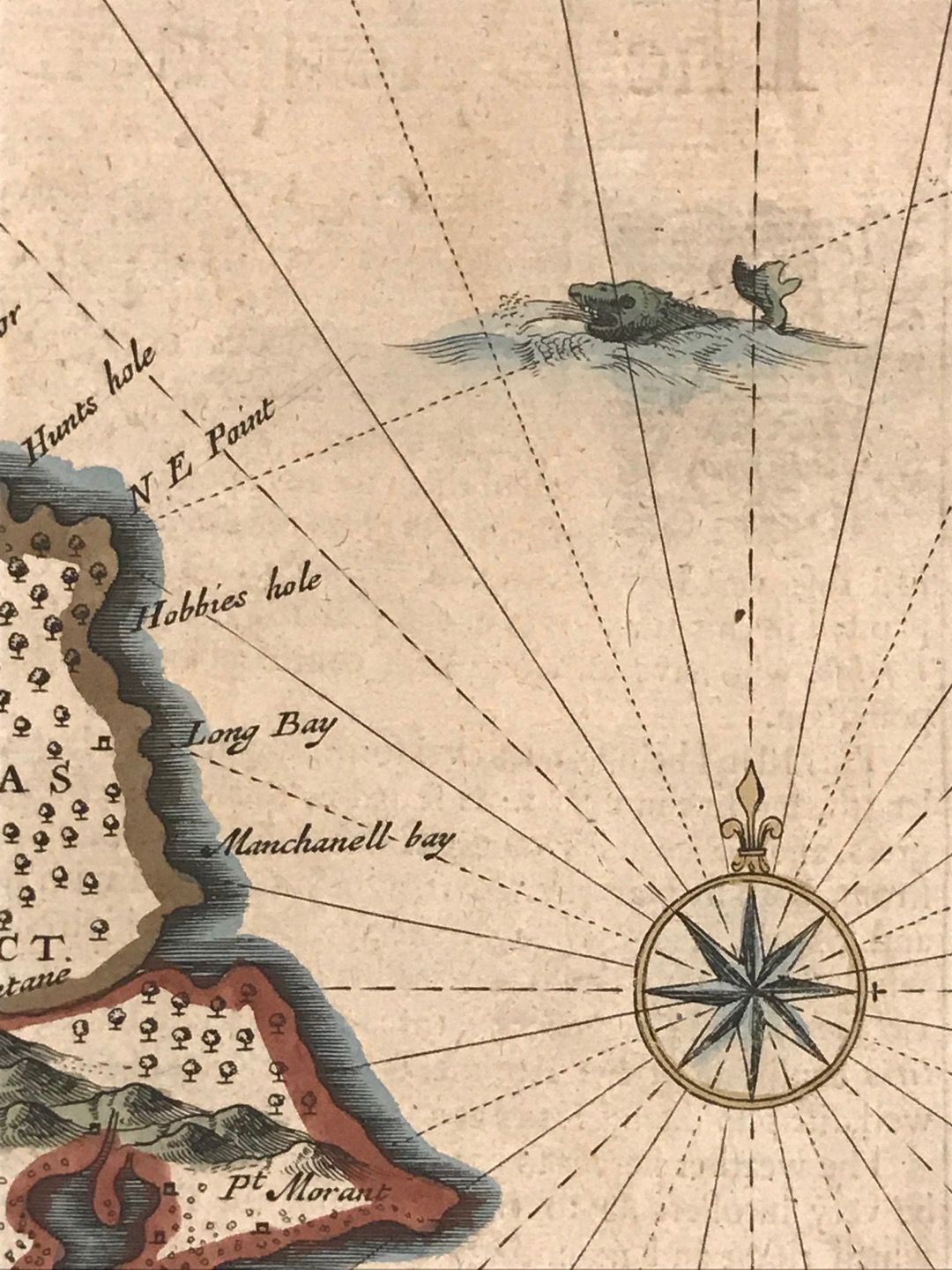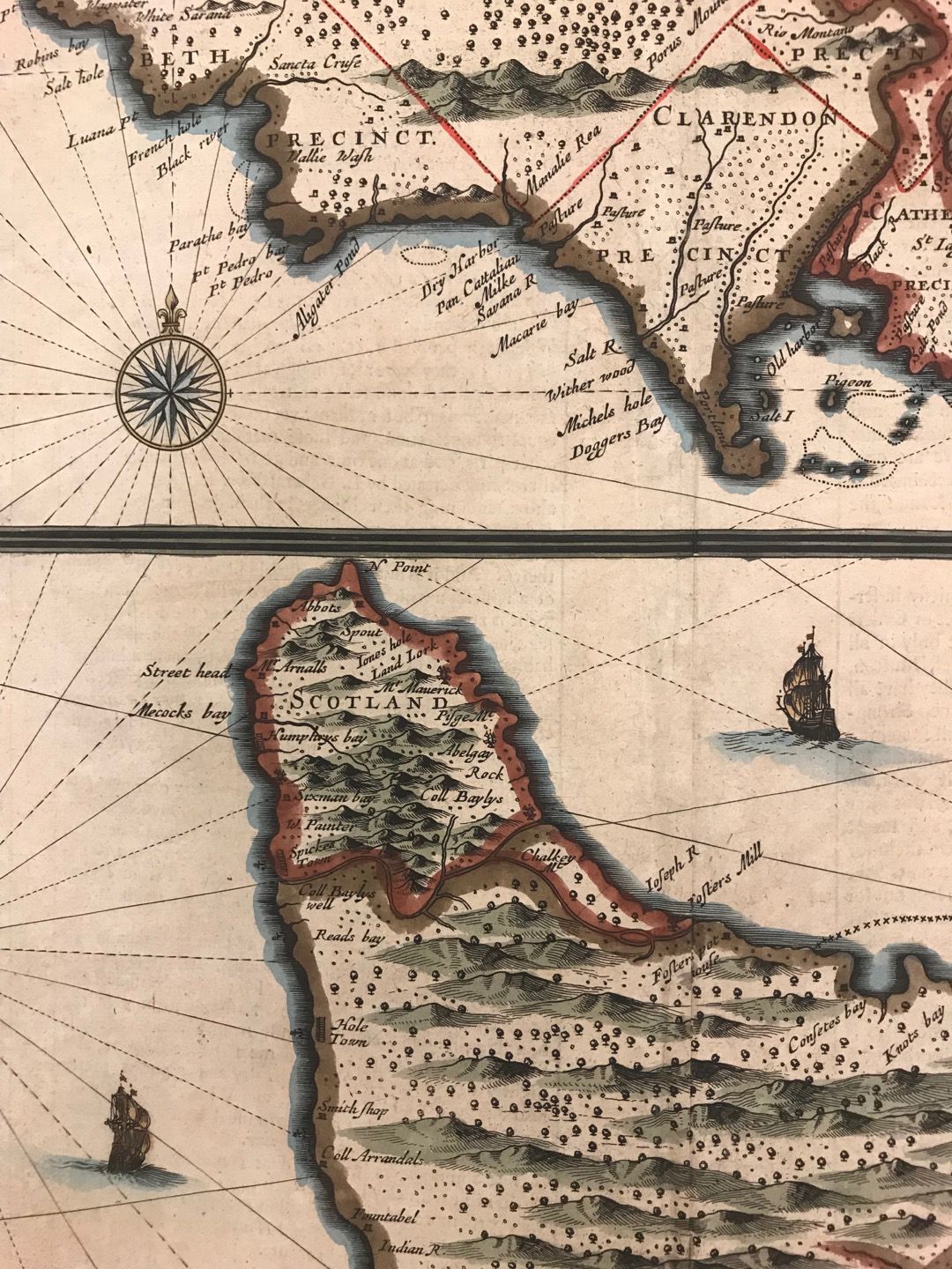 Speed, John. A Map of Jamaica and Barbados. Sold by Thomas Bassett in Fleetstreet and Richard Chiswell in St. Pauls Churchyard. London, 1676. map detail