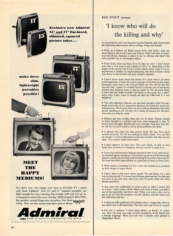 Rex Stout is best known for his mystery novels featuring Nero Wolfe, a rotund and brilliant detective who was loathe to leave his house, and his assistant, the fast talking and witty Archie Goodwin. Between 1934 and 1975, Stout wrote 45 Nero Wolfe mysteries which were published both in magazines and book format. Stout’s novels helped define an American school of detective fiction, merging the classic British detective style of Conan Doyle’s Sherlock Holmes with the wit and sass of American crime fiction, respectively personified in Wolfe and Archie. Stout was also involved in several writers’ organizations such as the Author’s Guild, through which he campaigned for authors’ rights to their creative property.
