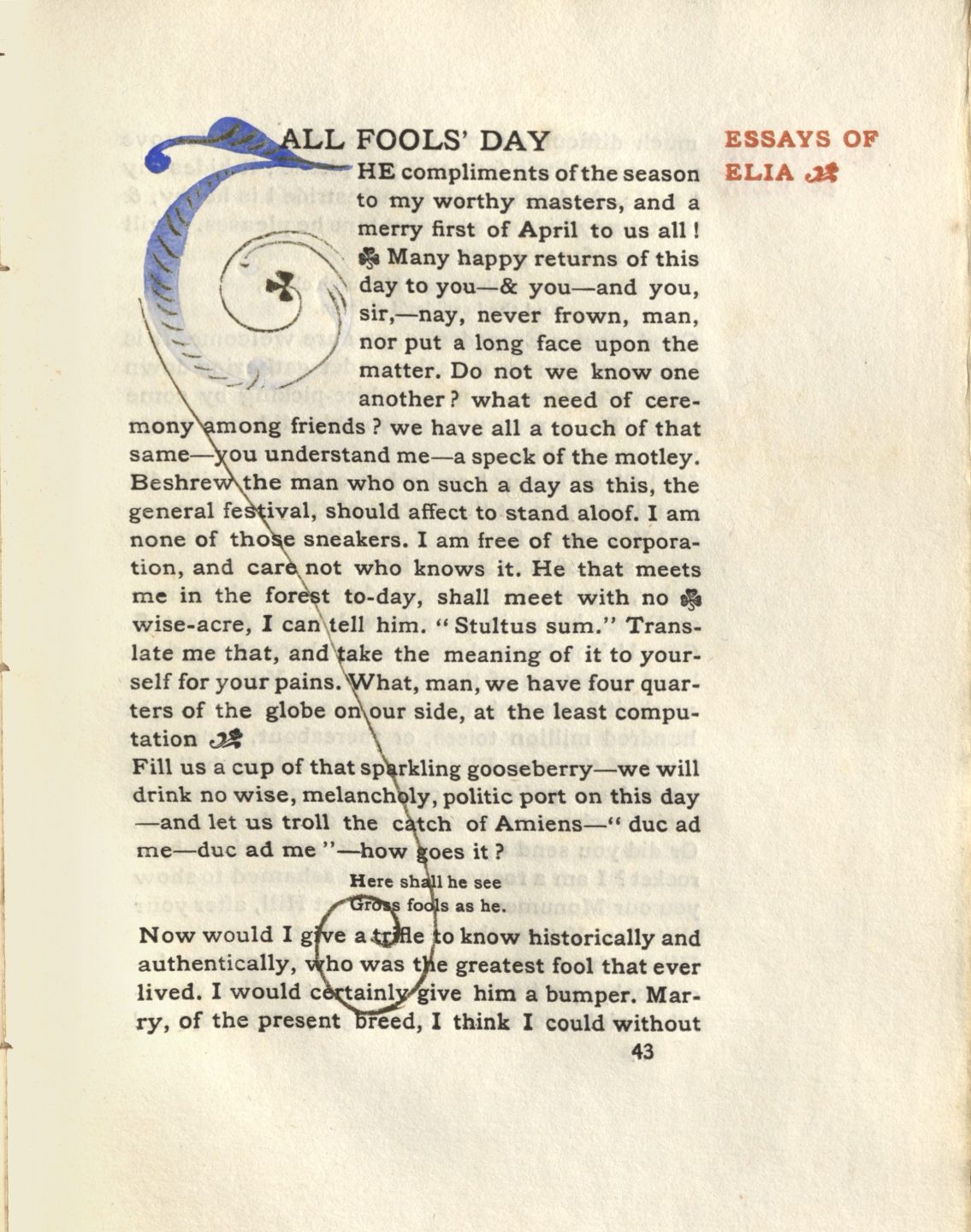 Lamb, The Essays of Elia, PR4861 .A1 1899 GENERAL
