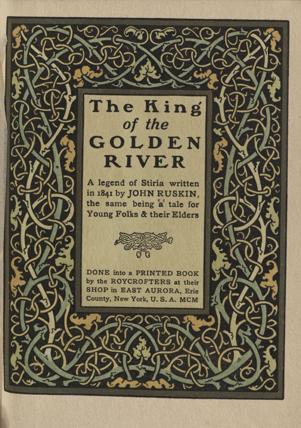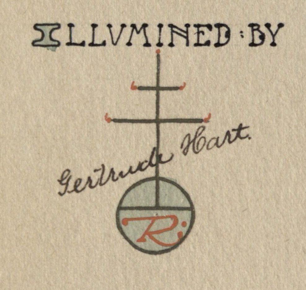 The King of the Golden River (1900) is another excellent sample of hand-illumination by the Roycrofters. This particular work was illuminated by Gertrude Hart and contains her signature on the limitation statement. The initials and colophon are also hand colored.