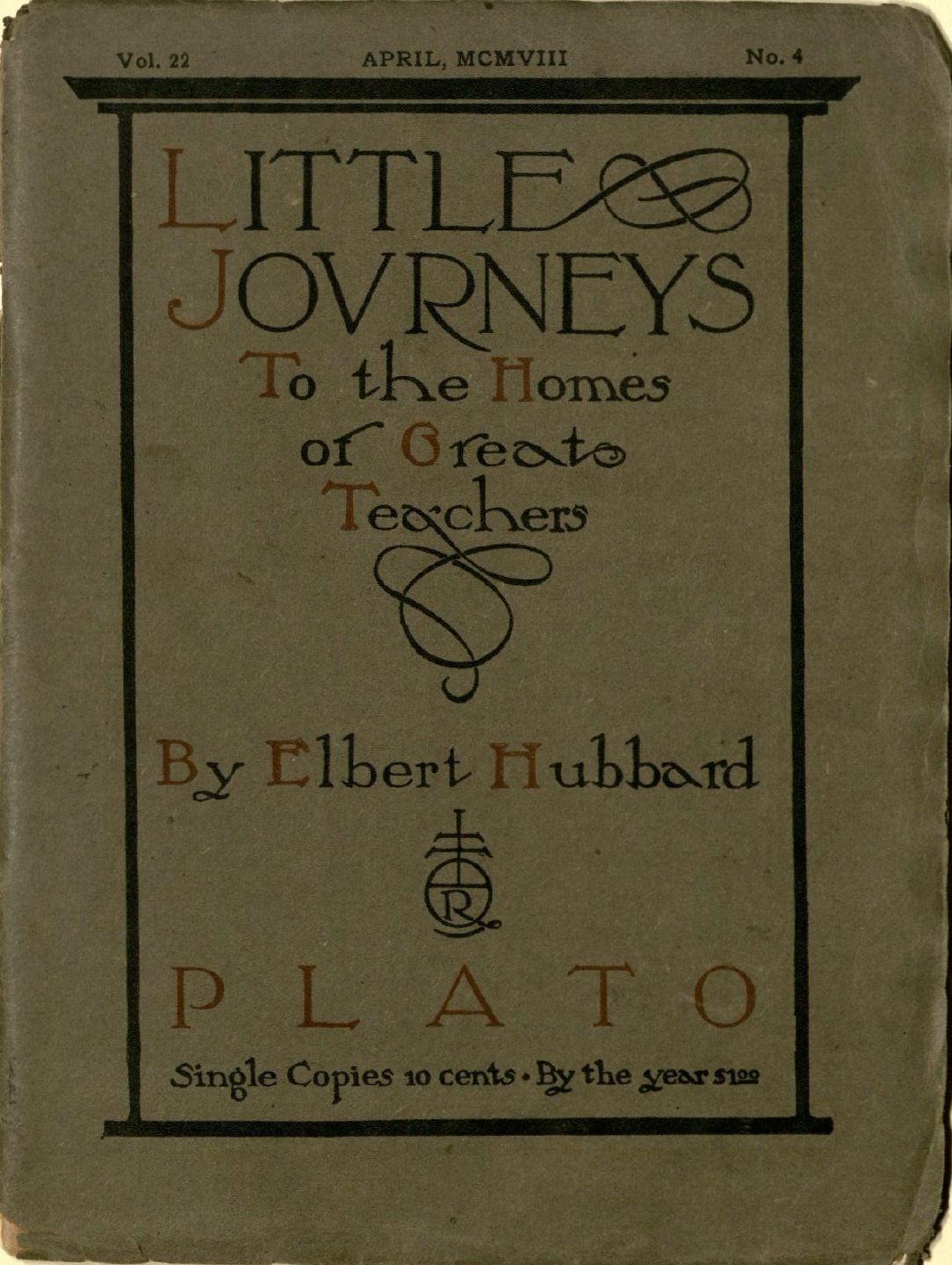 Little Journeys, a series of books by Hubbard, was available in a range of binding styles and prices, with the most affordable produced in greatest numbers. Displayed here: the most expensive, Joaquin Miller (1903), with leather and marbled paper cover; the mid-range Pericles (1903), bound in cloth and paper cover; and the most affordable Plato (1908), with a cover made of unsupported printed-paper.