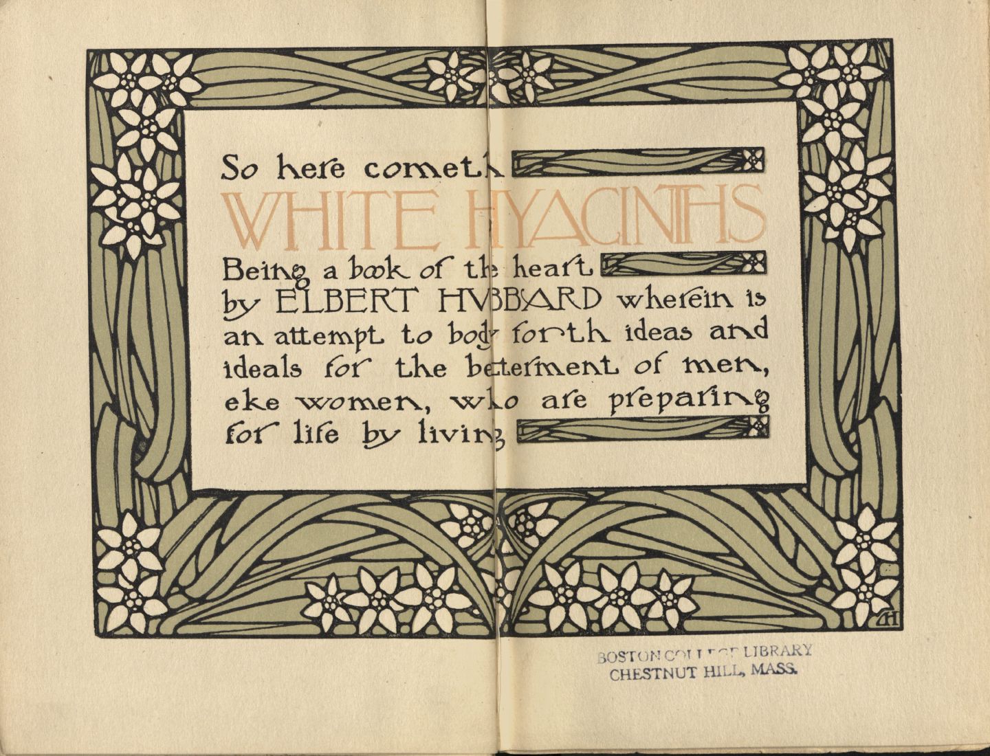 Hubbard, So Here Cometh White Hyacinths: Being a Book of the Heart, PS2042 .S6 1907 GENERAL