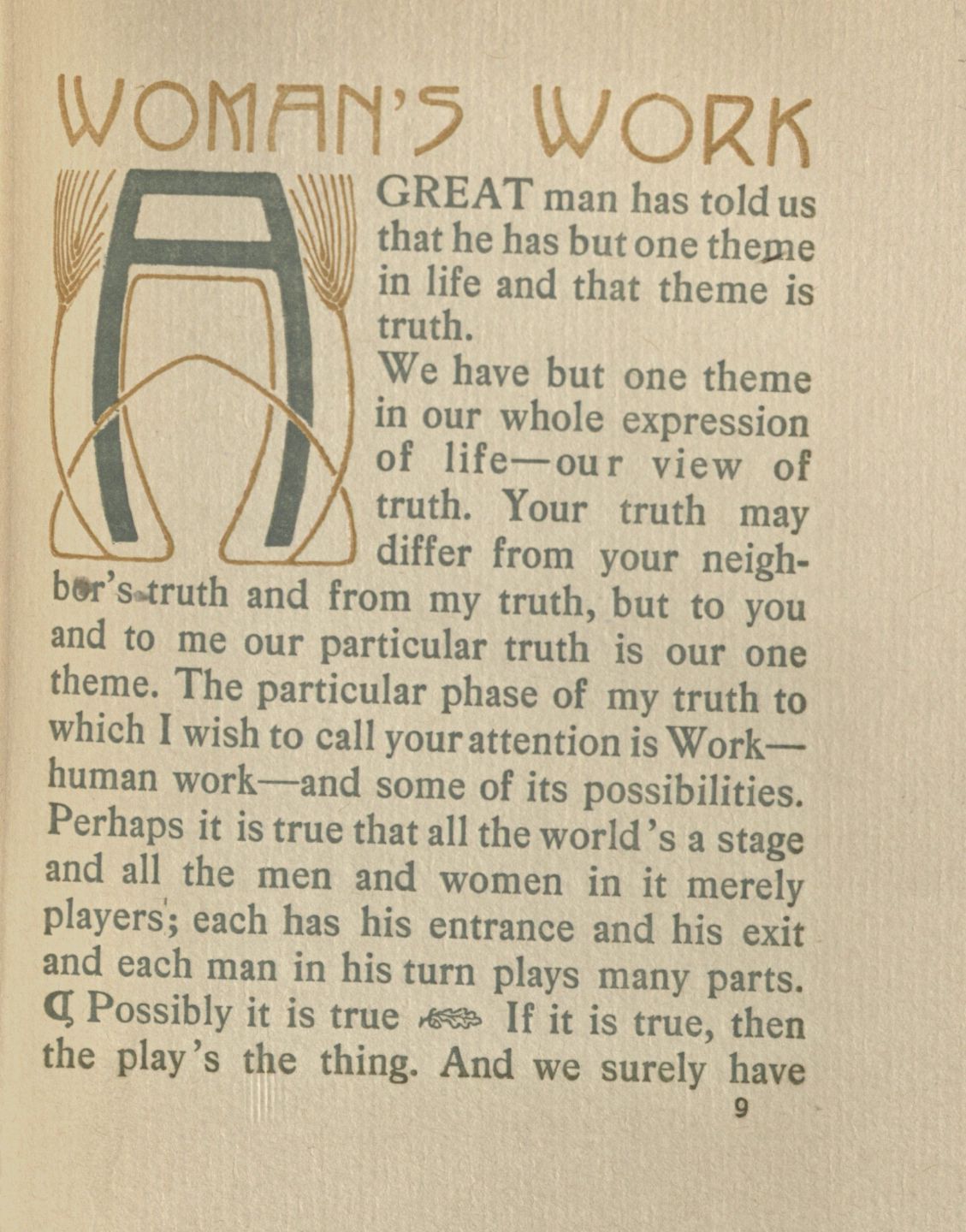 Hubbard, A., Woman’s work: Being an Inquiry and an Assumption, HQ1221 .H87 1908 GENERAL