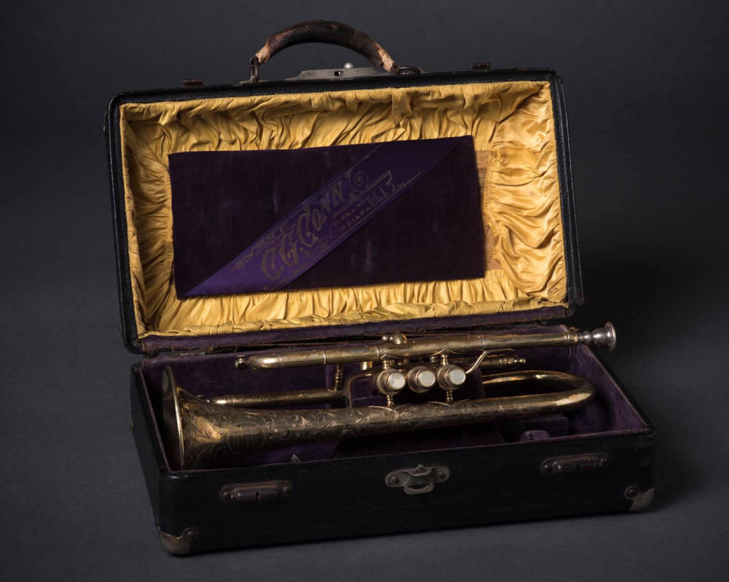 This cornet is part of the Michael Cummings Collection of Patrick S. Gilmore Materials, though it cannot be verified whether the instrument belonged to Gilmore. The element of the unknown that exists within archives is part of the history of the objects and their possible futures as they pose questions about their own origins.
