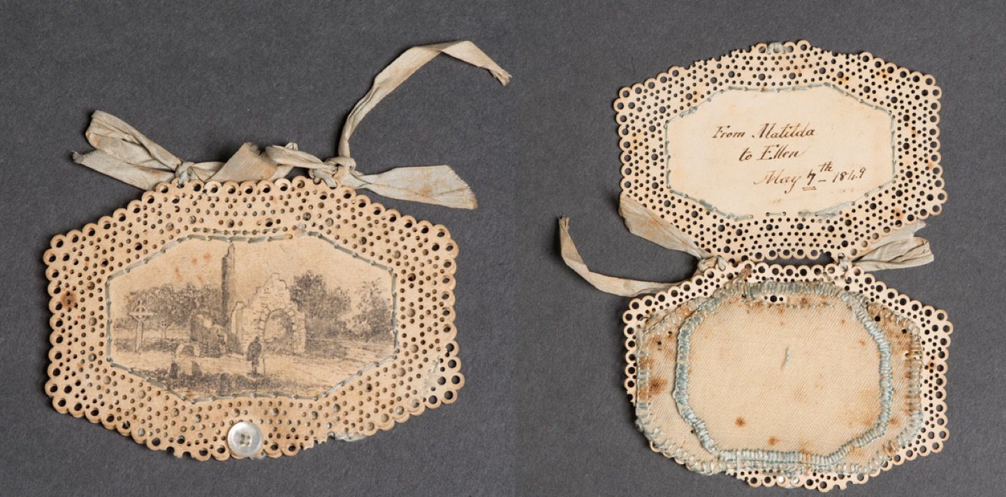 Sewing filled women’s working and leisure hours in the 19th century. This needle case was exchanged via letter between friends in 1849, and shows signs of wear in the rusty needle holes. This sample book is an example of the ways in which girls were taught to sew, providing a sewing curriculum complete with samples of the work.