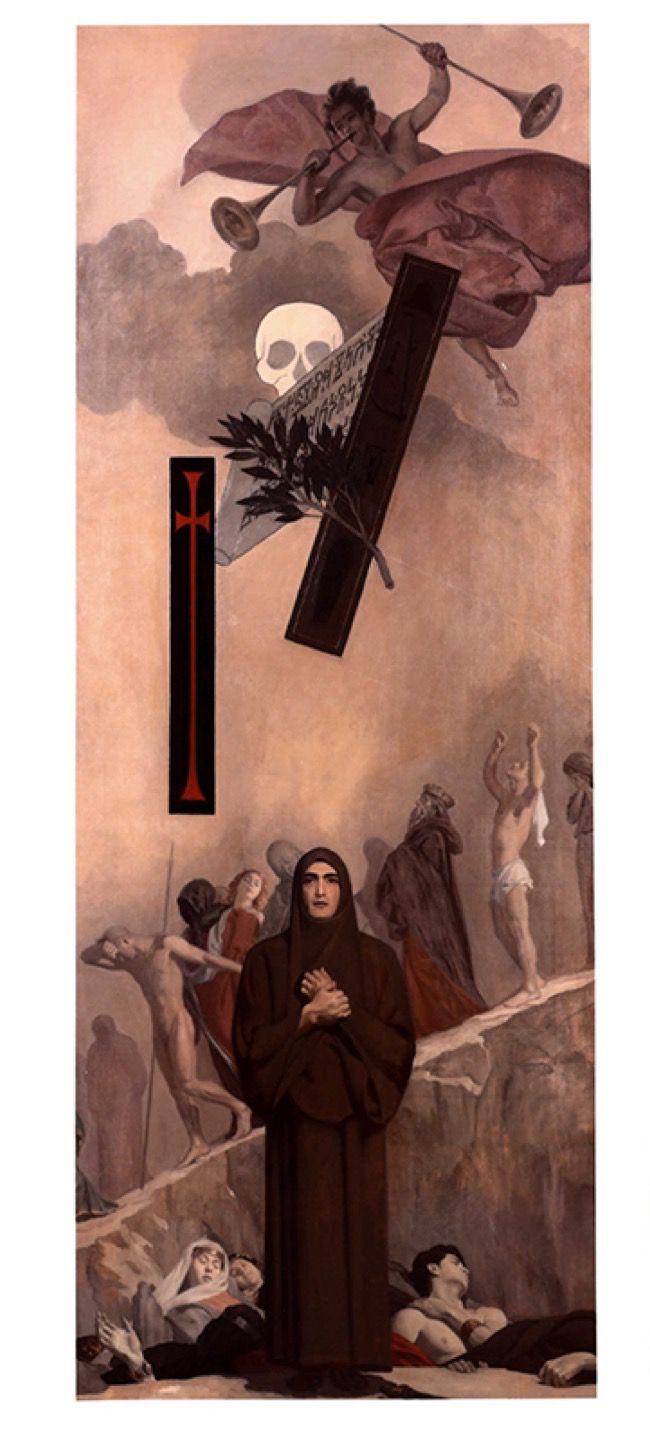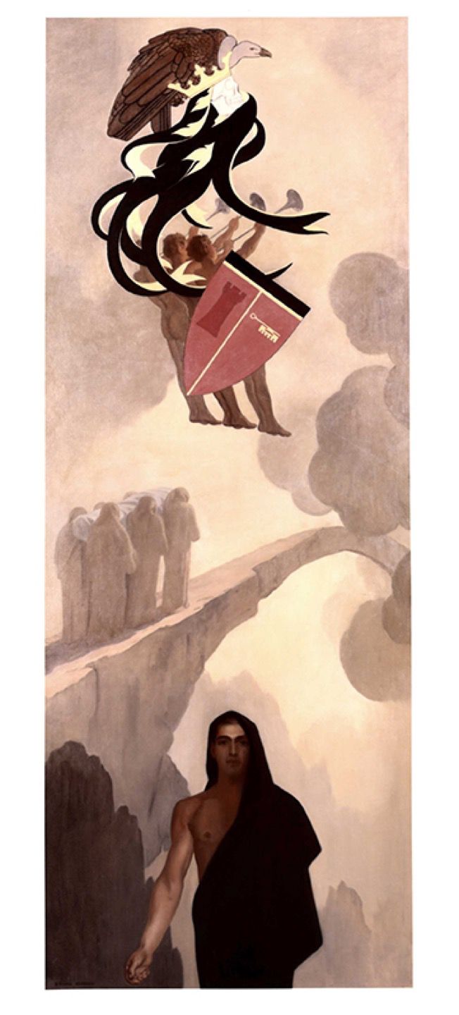 R. H. Ives Gammell, a student of the School of the Museum of Fine Arts in Boston, painted a sequence of 23 images drawn from Thompson’s most famous poem “The Hound of Heaven.” Influenced by Jungian imagery, the paintings are considered Gammell’s most significant work, and contrast with Thompson’s casual sketches displayed below.