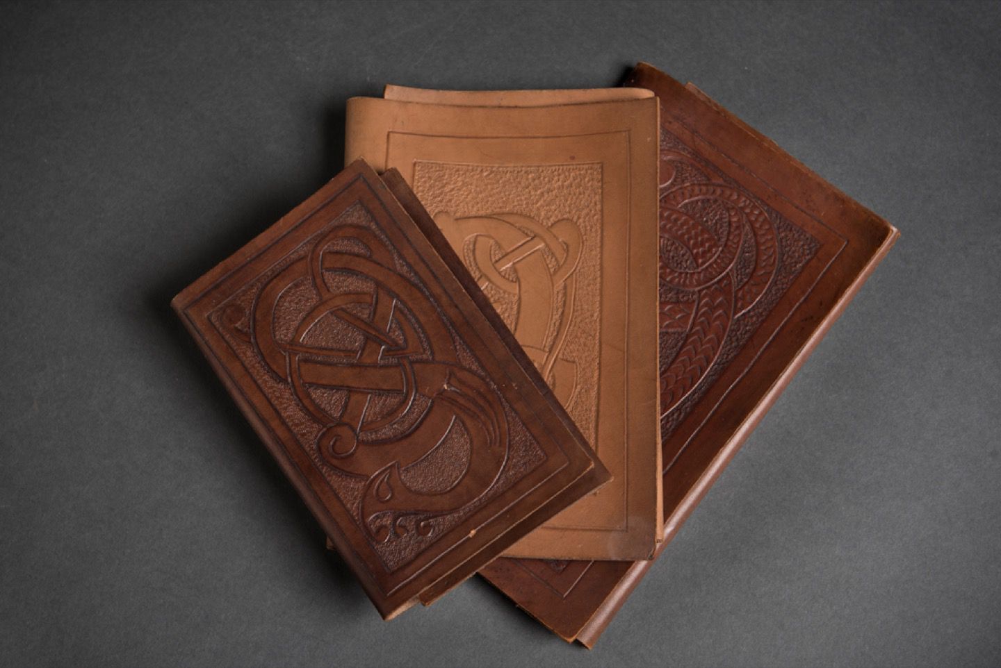 These objects are all used in, or the product of, the art of making books. This range of items shows the process of creating books from beginning to ending–from George F. Trenholm’s type design, to the detailed book covers of the Cuala Press, to Eric Gill’s illustrative woodblock.