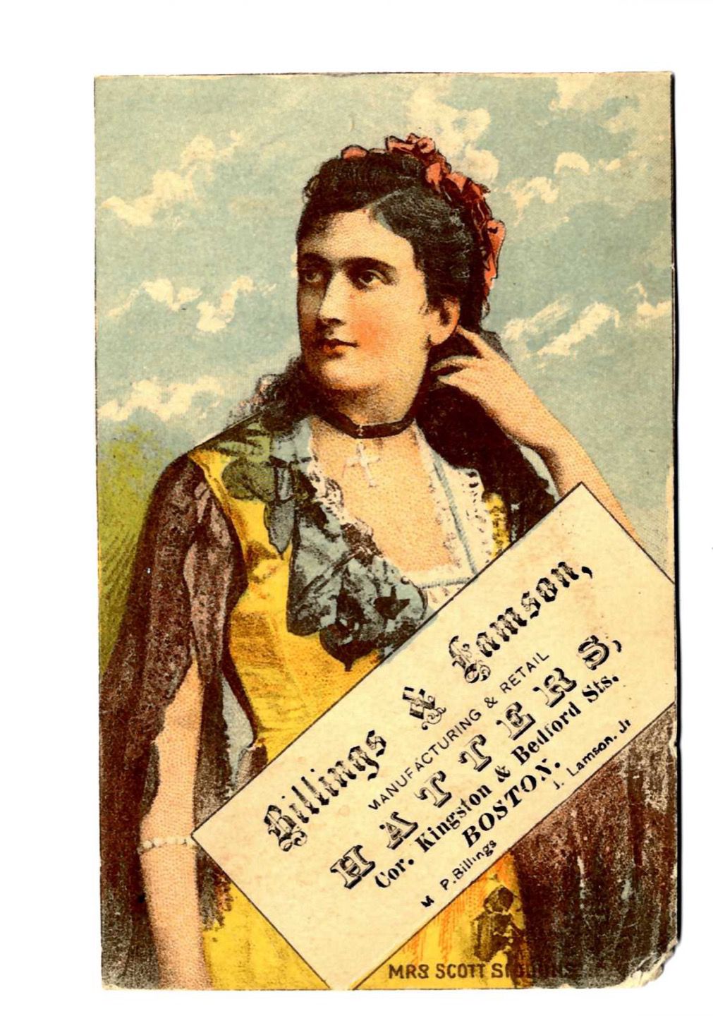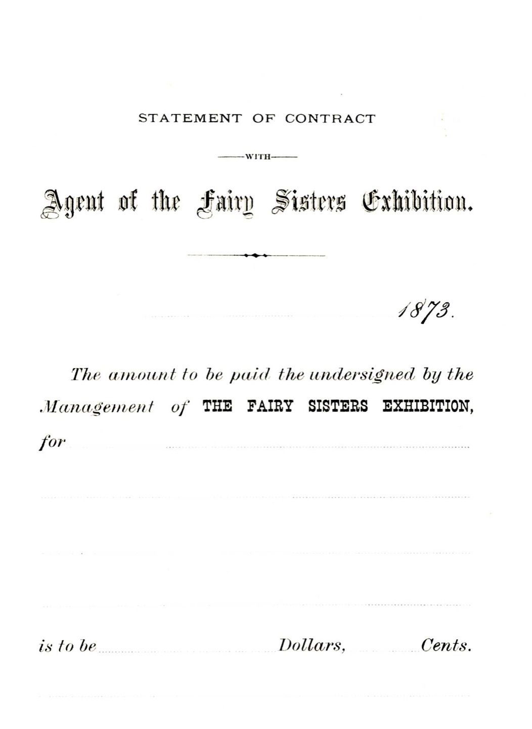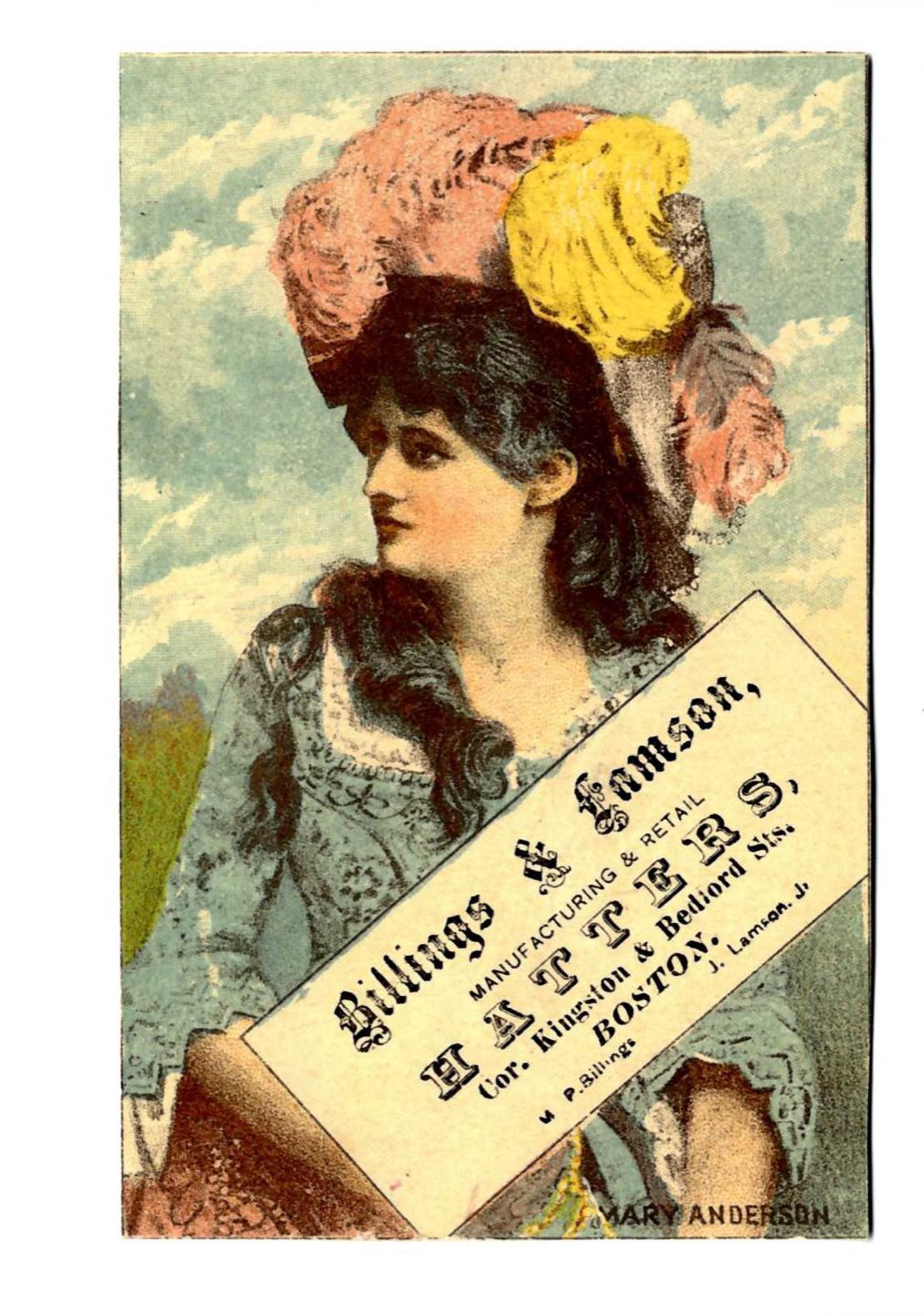 Paperwork and promotional materials are central to many jobs, especially those in the world of performance. Boston hatters Billing and Lamson knew that the best way to advertise their products was with a little celebrity power, printing trade cards featuring actresses (only one of them wears a hat). The contract, agent’s card, and advertisements for Cassie and Victoria Foster, known professionally as “The Fairy Sisters,” shows the behind-the-scenes machinations of promotional efforts.