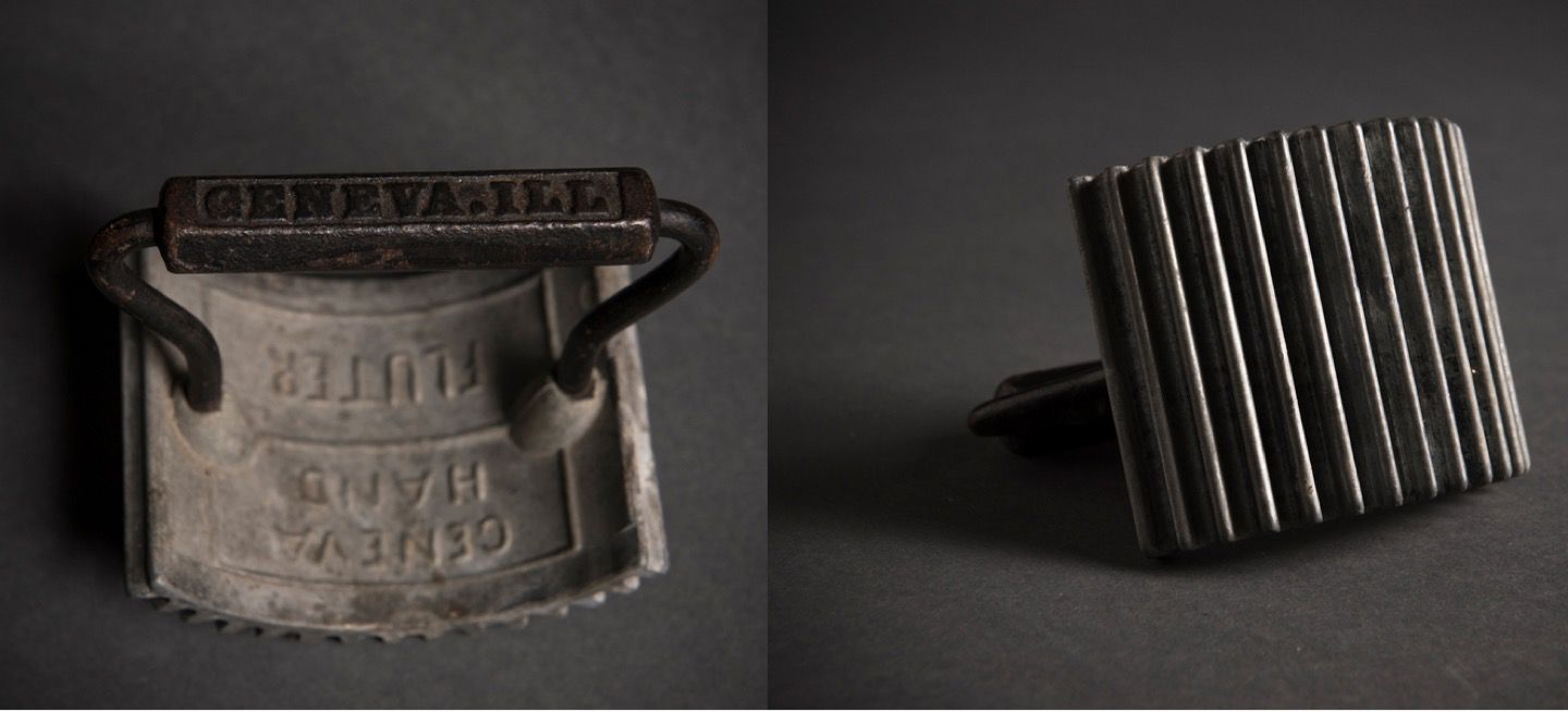 The Sisters of the Holy Cross and the Seven Dolours used this iron to crimp the brims of their wimples. This version was later replaced by a more efficient fluting machine designed by Sister M. Cyril.
